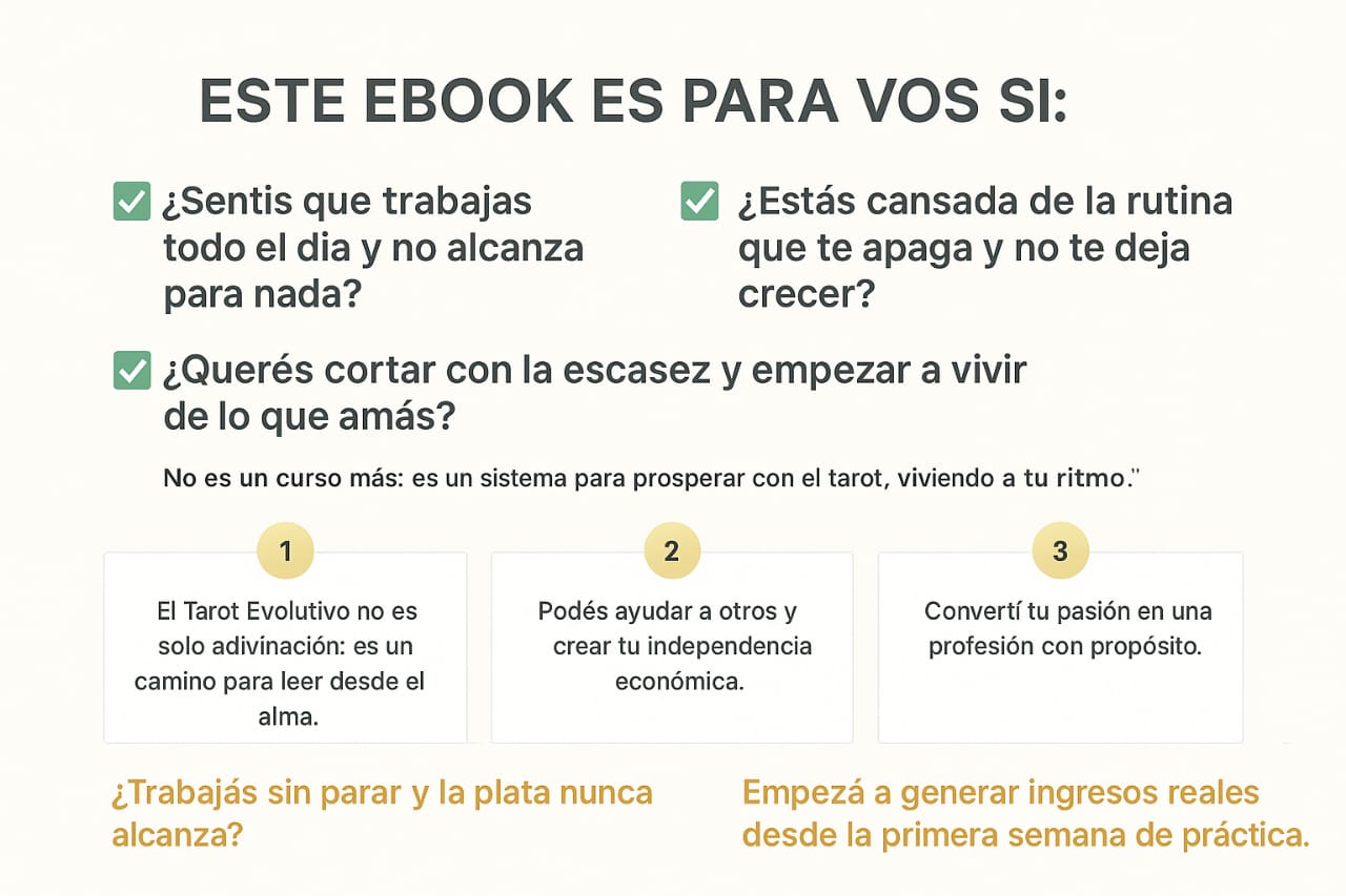 No solo aprendí a leer las cartas, sino que empecé a transformar mi vida. Este ebook fue el empujón que necesitaba para darme permiso de prosperar haciendo lo que amo.